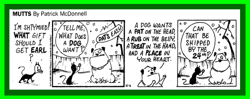 All original images Copyright © 2003 Leilah's Laughs Mutts cartoon is the property of Patrick McDonnell and King Features. I think this one's from 97? It's been on my cubicle wall at work for so long, I've forgotten!